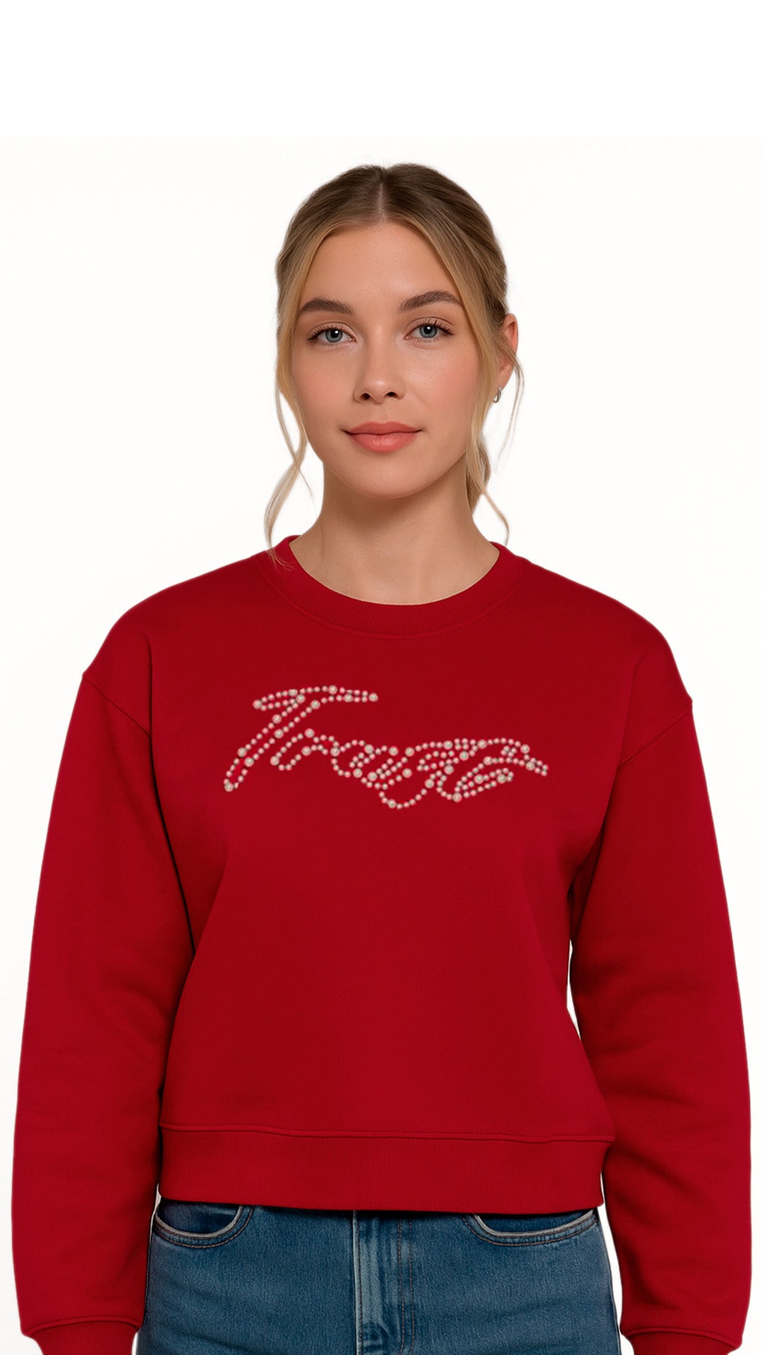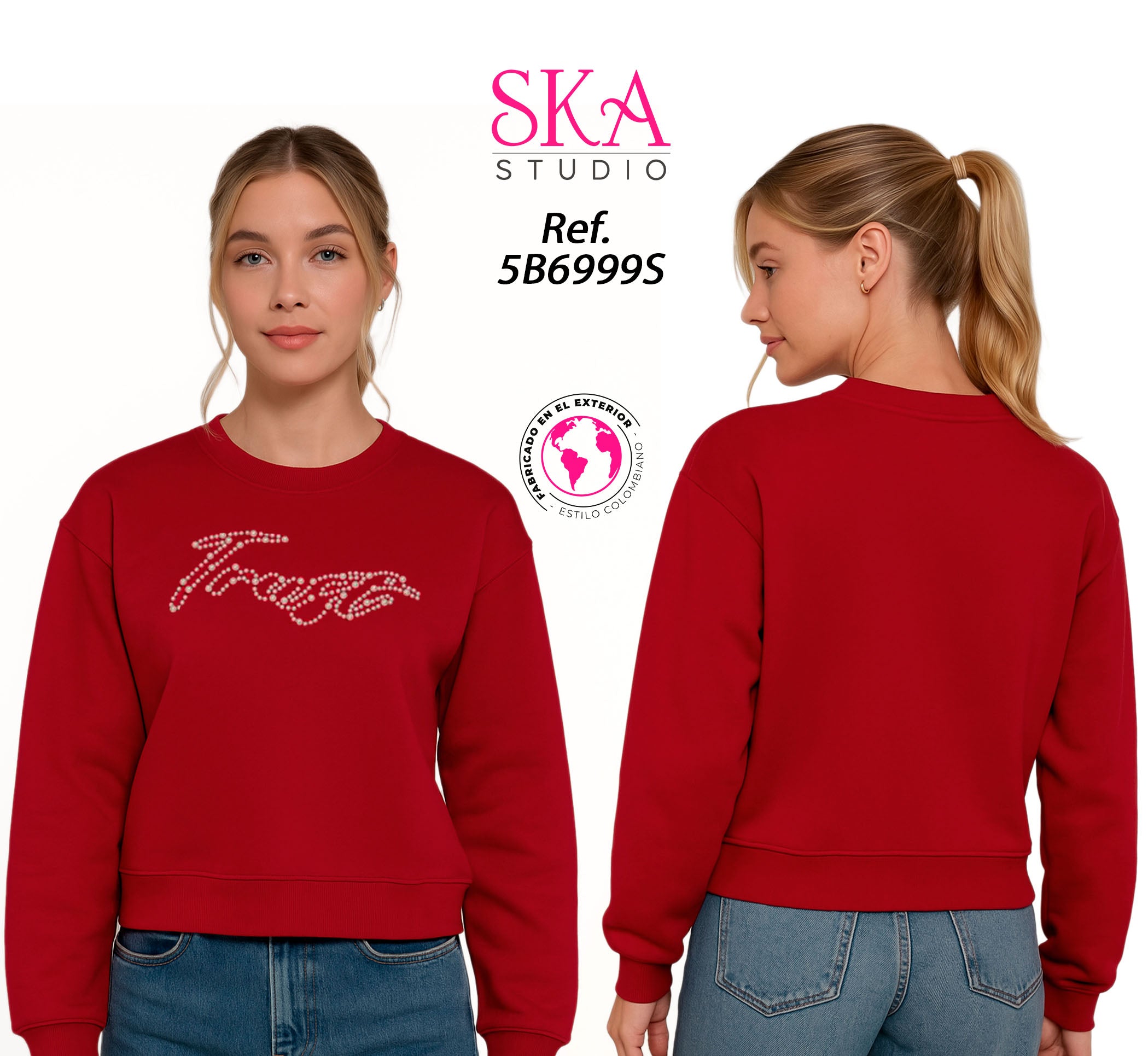 Destaca con estilo y comodidad con esta buzo tipo crop color rojo, perfecta para darle energía a tus looks casuales. Su diseño con detalle de pedrería en el frente agrega un toque femenino y moderno, ideal para mujeres que aman verse cómodas pero con un toque de glamour.