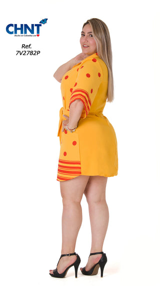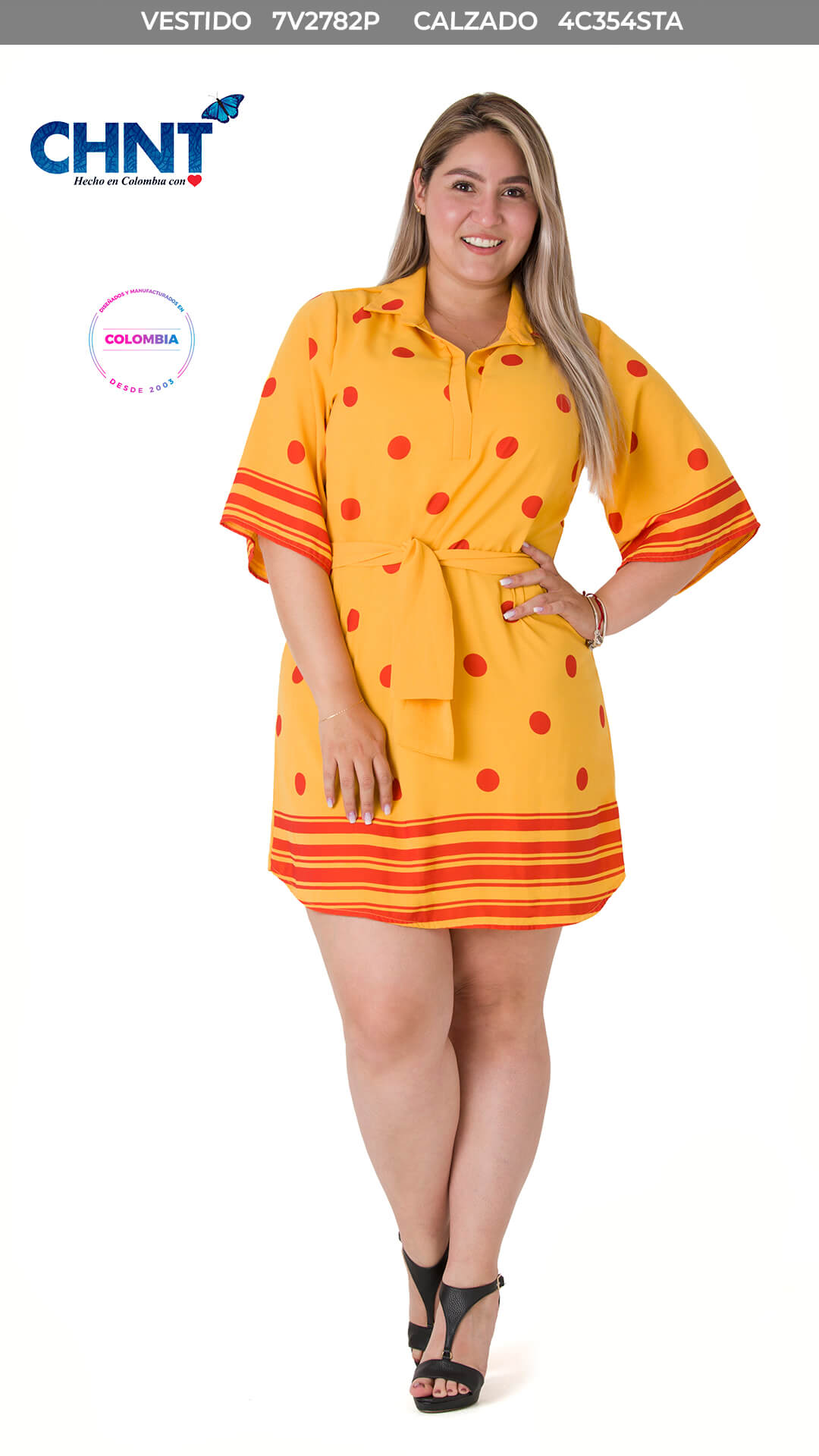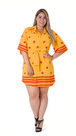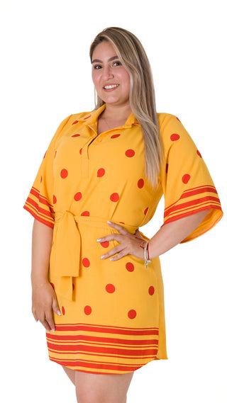 Vestido holgado con estampado y cinturón de fajín desmontable. Cómodo y perfecto para el día a día. Si lo que buscas en un look relajado úsalo con tus tenis o para un look más formal, agrega tus plantas favoritas. ¡te verás increíble!
