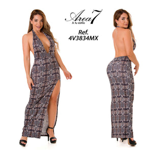 Este vestido de cuello en V es la elección perfecta. Su diseño elegante y espalda descubierta te brindan una apariencia sofisticada y glamorosa. ¡Destaca en cualquier evento con este impresionante vestido de moda!